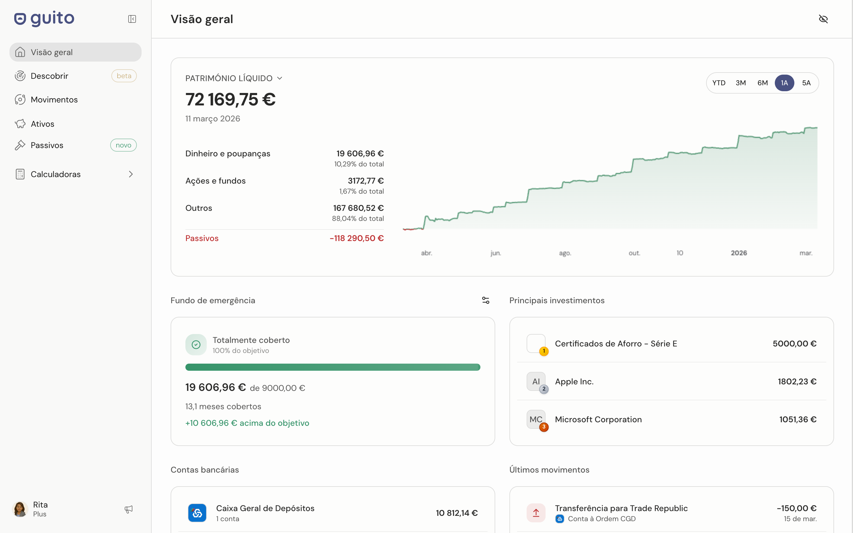 Ligação automática aos principais bancos portugueses via PSD2. Saldos e movimentos sincronizados todos os dias, ou registe manualmente.